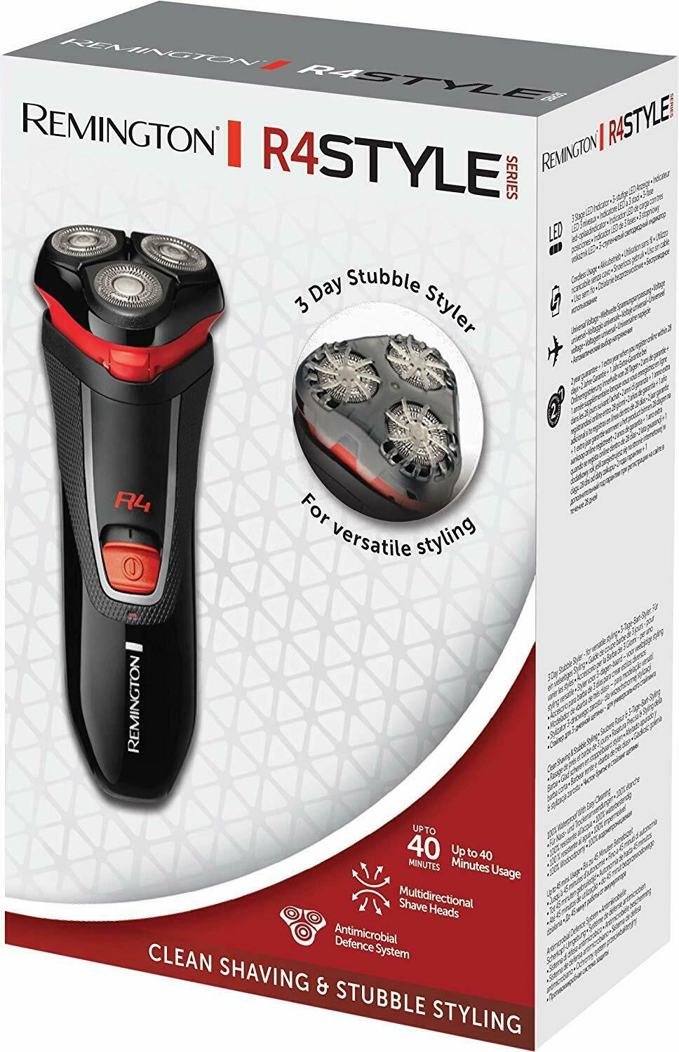 The R4 cordless Rotary Shaver is the one of the latest additions to the Remington Style Series shavers. It has dual track blades and flexing cutters to capture every hair for a precision shave whatever your beard style. The unique 3 day stubble styler attachment helps to give a groomed appearance to a more rugged look.