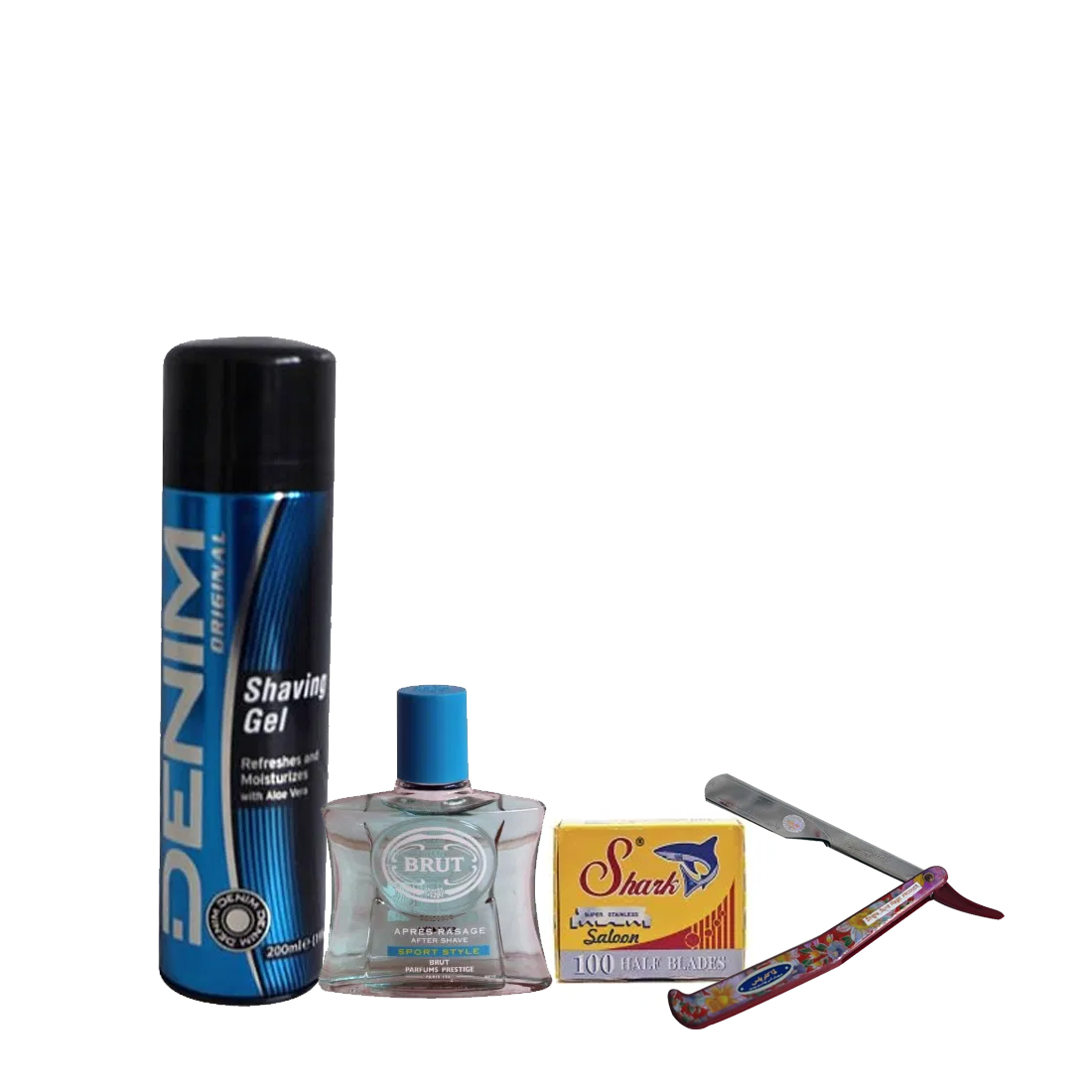 Denim shaving gel Brut aftershave shark single edged razor blades (1 box) Cut-throat